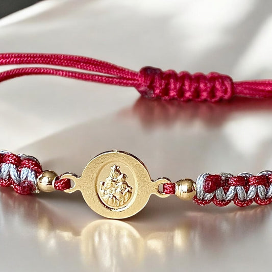 Pulsera macramé roja San Benito oro