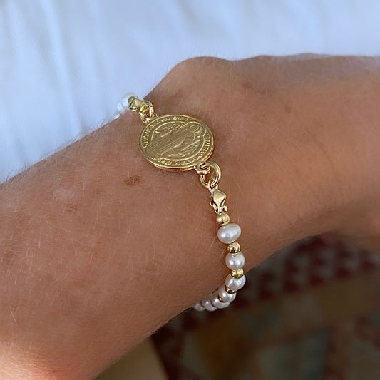 Pulsera perlas San Benito oro
