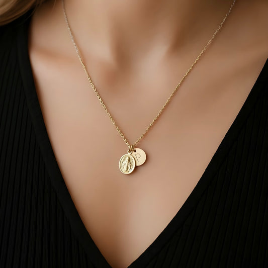 Collar medalla virgen niña circones oro