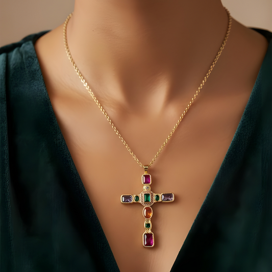 Collar cruz bizantina circones oro