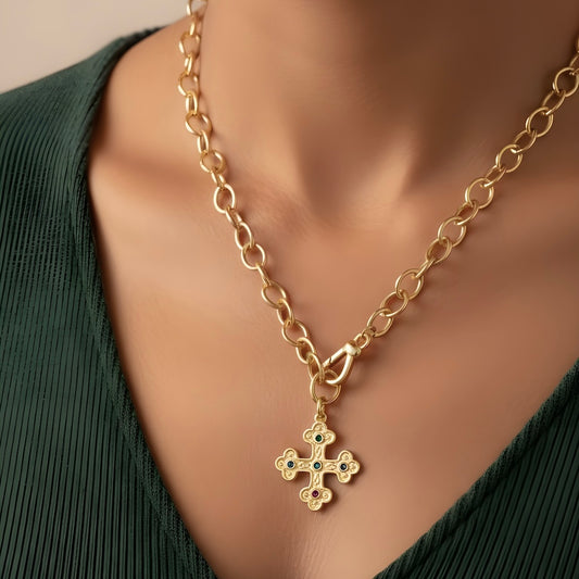 Collar eslabones cruz bizantina oro