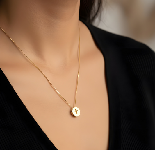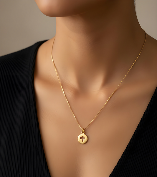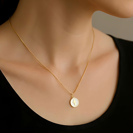 Collar moneda cruz calada oro