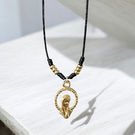Collar virgen de los rayos letra oro