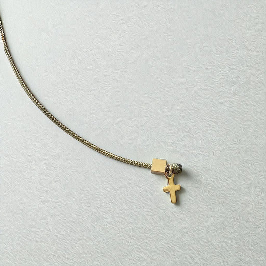 Collar hilo cruz esmaltada oro