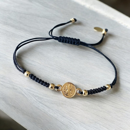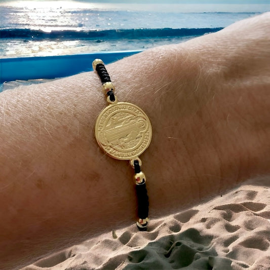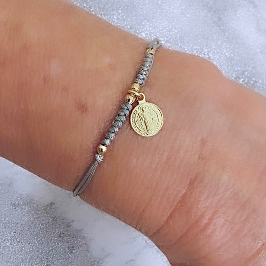Pulsera hilo medalla san benito oro