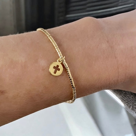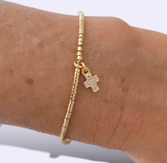 Pulsera mini cruz calada oro