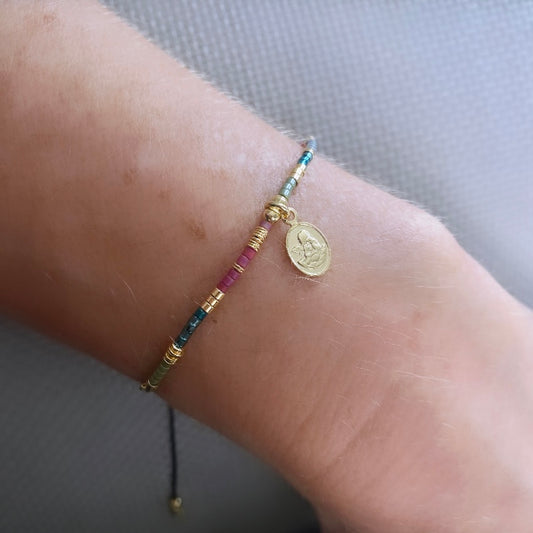 Pulsera mostacilla medalla padre nuestro oro