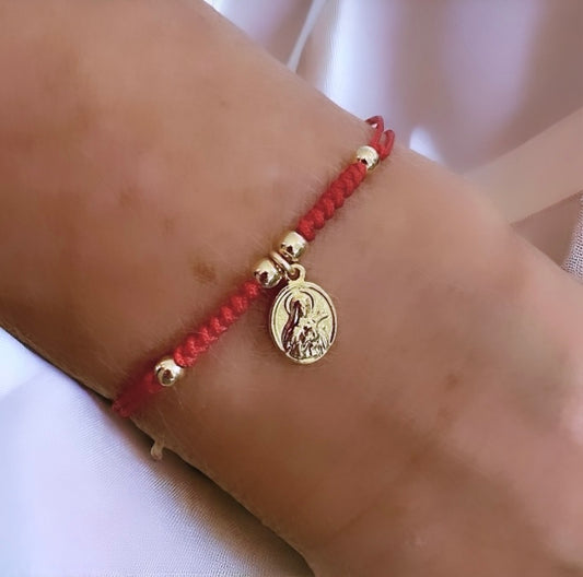 Pulsera hilo rojo Santa Teresita del Niño Jesús oro
