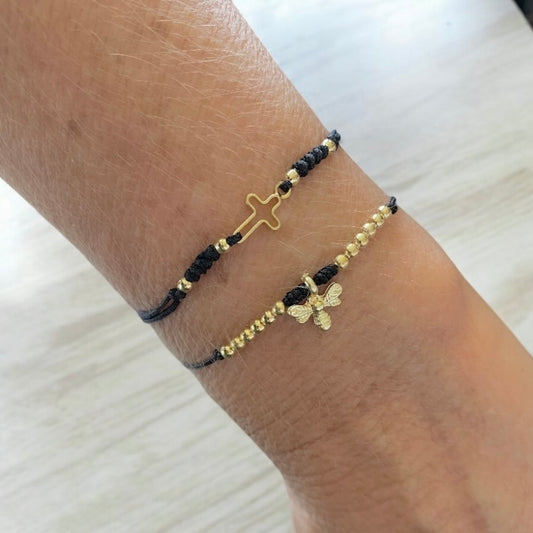 AgotadoPulsera hilo mini cruz oro