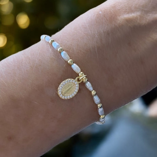 Pulsera perlas virgen oro