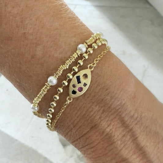 Pulsera bolitas medalla San Benito oro