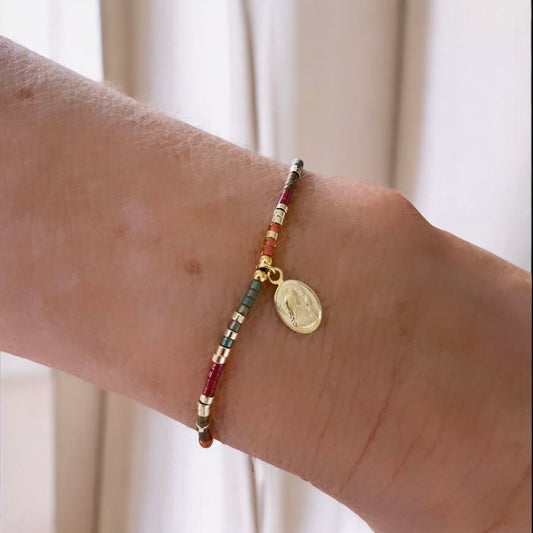 Pulsera hilo rojo Santa Teresita del Niño Jesús oro