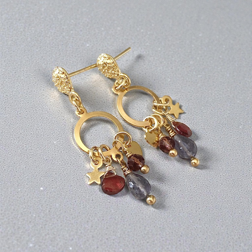 Piedras: granate, iolita y cristal color ciruela.