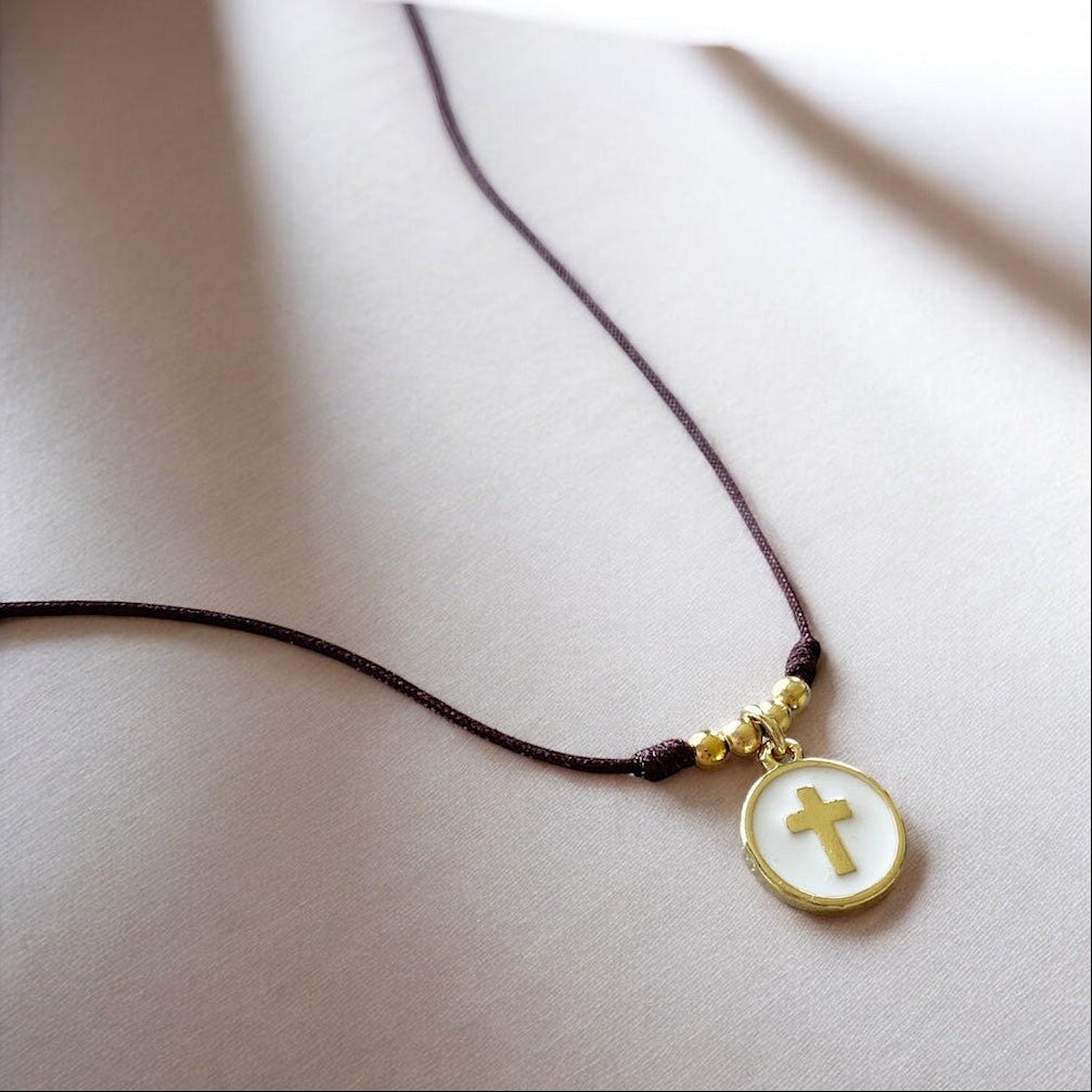 Collar hilo cruz esmaltada oro